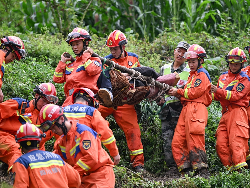 7月21日,在四川省雅安市汉源县马烈乡新华村,救援人员在转移受灾群众。 记者从21日凌晨在四川省雅安市汉源县召开的新闻发布会上获悉,截至20日20时,汉源县马烈乡“7·20”山洪暴雨灾害已找到失联人员4人、无生命危险,发现遇难者遗体8具。 7月20日凌晨2时30分许,马烈乡新华村受暴雨影响,马烈河突发大水,导致多处房屋被冲毁,30余人失联。 灾害发生后,当地迅速组织专业力量开展搜救。目前,当地道路、通信已部分恢复,受灾群众已第一时间得到安置,人员搜救工作仍在紧张进行中。 新华社记者 王曦 摄