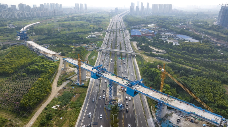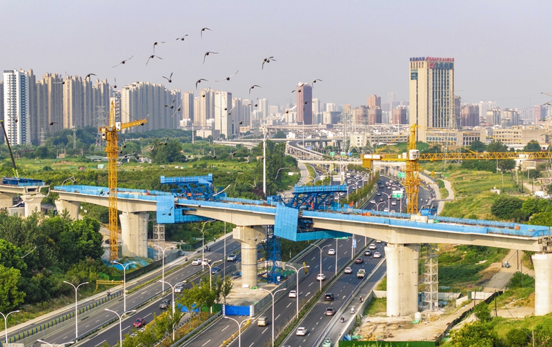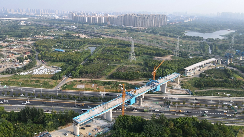 这是合安铁路引入合肥枢纽跨包公大道特大桥合龙现场(9月4日摄,无人机照片)。 当日,由中铁四局承建的合(肥)安(庆)铁路引入合肥枢纽工程跨包公大道特大桥合龙,为后续施工奠定基础。合安铁路引入合肥枢纽工程是长三角交通网络中的重要组成部分,项目建成后,对于优化沿长江地区铁路网布局、服务长江经济带协同发展,推动长三角高质量一体化发展等具有重要意义。 新华社发(刘玉才?摄)