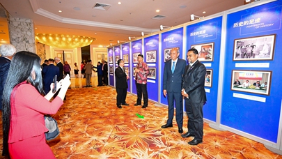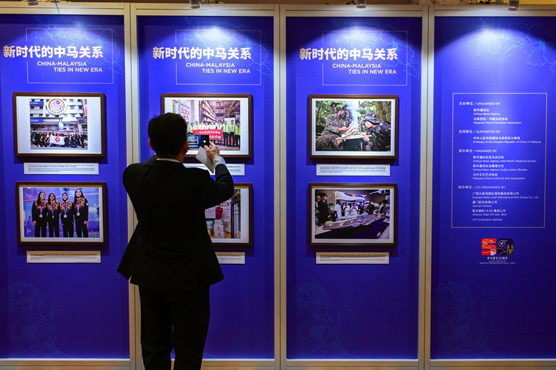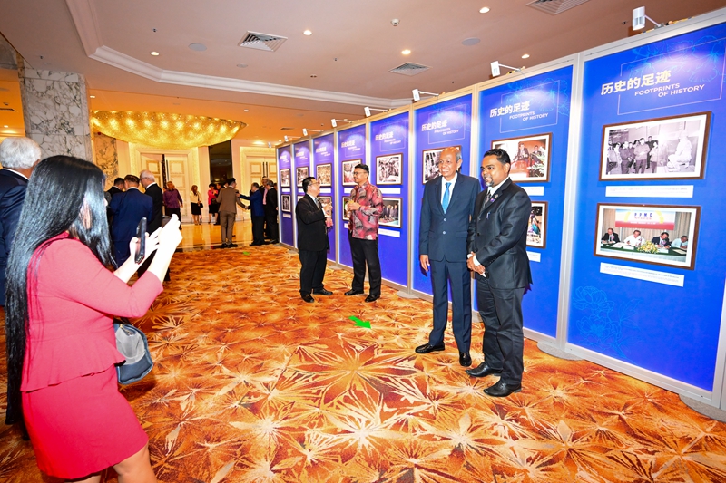 6月19日,人们在马来西亚首都吉隆坡观看中马建交50周年图片展。 以“携手同行?合作共赢”为主题的中马建交50周年图片展19日在马来西亚首都吉隆坡开幕。展览精选100张历史照片,生动展现两国交往的重要时刻。 新华社记者 朱炜 摄
