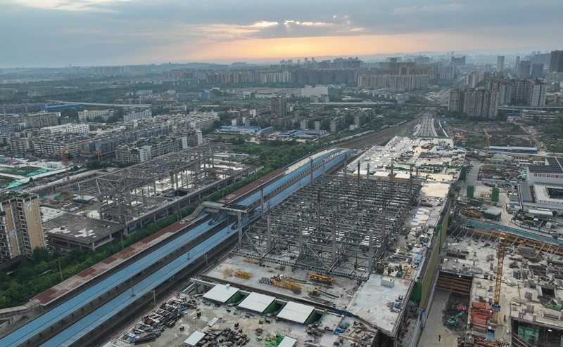 俯瞰改造中的成渝中线高铁成都站(6月20日,无人机照片)。 记者从中国铁路成都局集团有限公司成都建设指挥部获悉,6月20日6时,经近2000名作业人员520分钟的连续奋战,成渝中线高铁成都站南北站场交替施工圆满完成,标志着成渝中线高铁成都站改建工程整体过半,为项目按期开通奠定了坚实基础。这次交替施工是铁路营业线Ⅰ级施工,由中铁八局、中铁电气化局、成都工务段、成都电务段、成都供电段等10余家单位相互配合完成。 成都站位于四川省成都市,是新中国第一条自主建设的铁路——成渝铁路的起始站。为满足成渝中线高铁建设、市域铁路公交化改造建设等需要,车站进行了拆除扩建。车站建设采取“分步施工、南北交替”方案,将施工区域划分为南北两个作业面,实现了铁路正常运输与工程建设同步推进,完成衔接成渝、达成、宝成等多条铁路线路的拨接与改造。 新华社记者 江宏景 摄