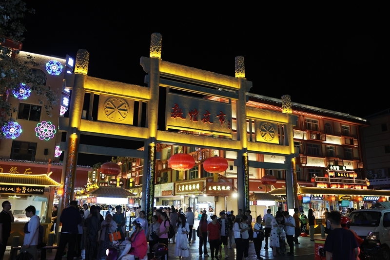 6月26日晚,游客在敦煌夜市游览。 今年以来,甘肃省敦煌市对敦煌夜市等特色街区进行全面提升改造,围绕敦煌深厚的历史文化底蕴,将敦煌壁画、丝路文化等元素巧妙融入其中。不断调整优化消费业态、通过布设文化景观小品、打造沉浸式餐饮体验空间、上线特色文创产品和开展主题演绎互动等为游客带来了多元的体验,让“夜经济”持续升温,不断释放文旅消费潜力。 新华社记者 陈斌 摄