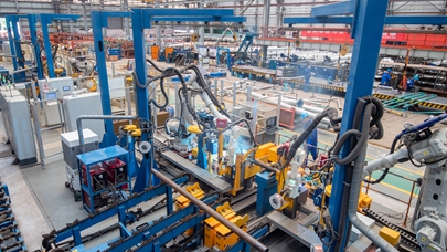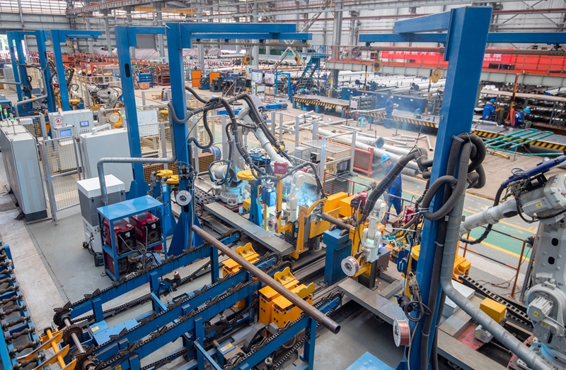5月16日,在湖北省武汉市武昌造船生产车间,工作人员在查看焊接机器人焊接的焊缝成型。 近年来,位于湖北省武汉市新洲区的武昌船舶重工集团有限公司围绕新型公务船、高端海工船、中小型绿色智能油化船和支线集装箱船等主建船型,积极推进数字化转型与智能制造,助力航运高质量发展。 新华社记者 杜子璇 摄