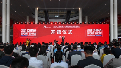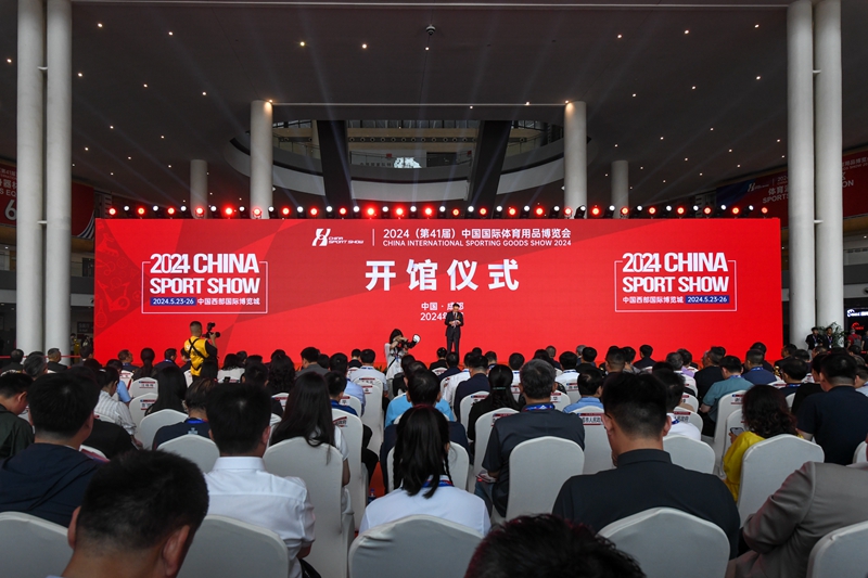 这是5月23日拍摄的博览会开馆仪式现场。 当日,2024(第41届)中国国际体育用品博览会在成都中国西部国际博览城开幕。 新华社记者 唐文豪 摄